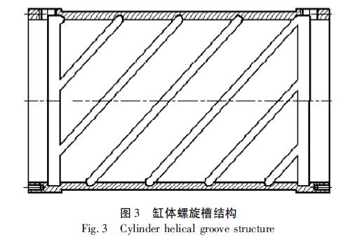 接,兩端用密封圈密封,冷卻水從缸體13 左端冷卻水入口10 流入,經(jīng)過前述截面為半圓形的螺旋槽從右端冷卻水出口15 排除,避免冷卻水循環(huán)短路,冷卻效果好。