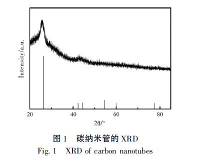 將500 mg 的未經處理的碳納米管,在80 mL 硝酸( 60 mL)和硫酸( 20 mL) 的混合物中回流,80 ℃溫度下攪拌12 h。產物用去離子水和乙醇洗滌,經離心收集,收集產物在80 ℃溫度下干燥12 h。