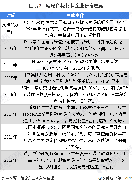 圖表2:硅碳負(fù)極材料企業(yè)研發(fā)進(jìn)展
