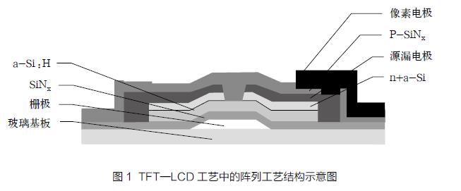 在薄膜晶體管液晶顯示器(t h i n—f i l m t r a n s i s t o r—l i q u i dcrystal display,TFT—LCD)中的導(dǎo)電薄膜按材質(zhì)分為遮光型和透光型2大類。遮光型導(dǎo)電薄膜就是普通的導(dǎo)電金屬,如鋁(A l)、銅(C u)、鉬(M o)、鉻(C r)、鈦(T i)等。透光薄膜一般是在一些半導(dǎo)體氧化物中摻雜金屬元素,如I TO等[1]。T FT—LCD導(dǎo)電薄膜的特殊性在于使用了透明的摻錫