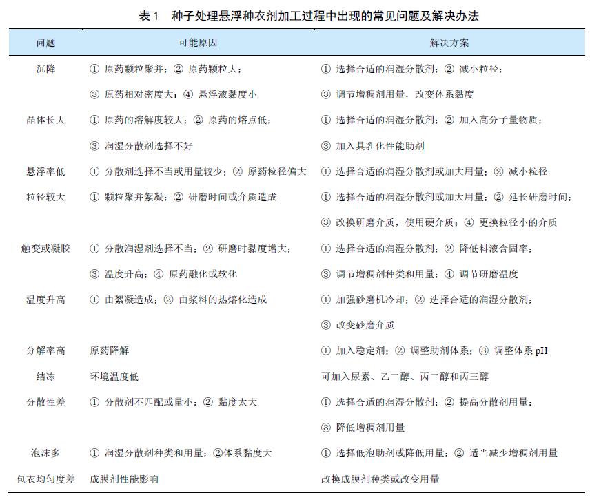 種子處理懸浮劑加工中易出現的問題及解決方案