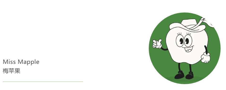 梅蘋果小姐是該團(tuán)隊(duì)中經(jīng)驗(yàn)最豐富的食品偵探。她依稀記得,她是在追捕一只試圖吃掉她妹妹部分身體的黃蜂時,對偵探調(diào)查事業(yè)產(chǎn)生了興趣。就像葡萄酒一樣,梅蘋果小姐的頭腦似乎也隨著年齡的增長而越來越好。她在使用如她一樣經(jīng)典的參考方法時特別自信。梅蘋果小姐非常喜歡甜食,她是所有水果類制品無可爭議的專家,如果汁、醬汁和水果派,甚至包括蘋果派。