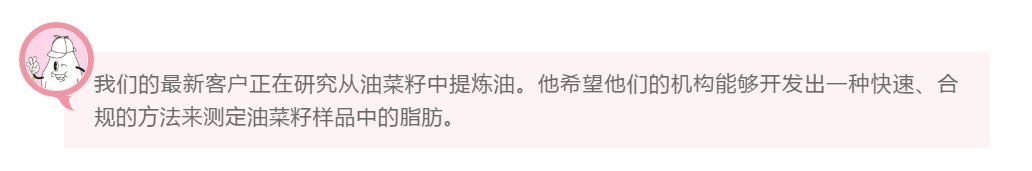 私家偵探得到了一個新的挑戰(zhàn),客戶希望快速、合規(guī)地測定油料中的油脂。偵探們集思廣益,決定演示如何使用經(jīng)濟(jì)型連續(xù)萃取法來測定大豆樣品中的油分。但他們是否能夠滿足客戶的需求,或許這將是他們第一個未解決的案件?