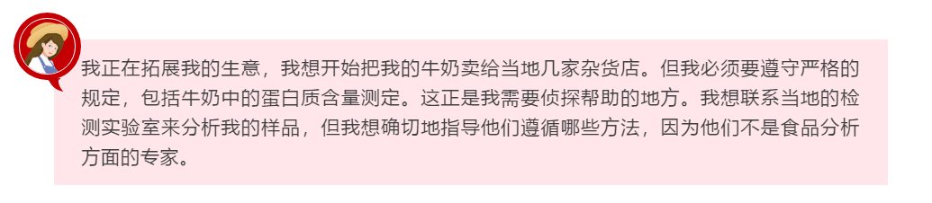 身為凱氏定氮法專家的梅蘋果贊許地點點頭,然后五人便著手實施牛奶中蛋白質測定的計劃。首先,他們購買了兩種類型的樣品:全脂超高溫滅菌牛奶和半脫脂超高溫滅菌牛奶。
