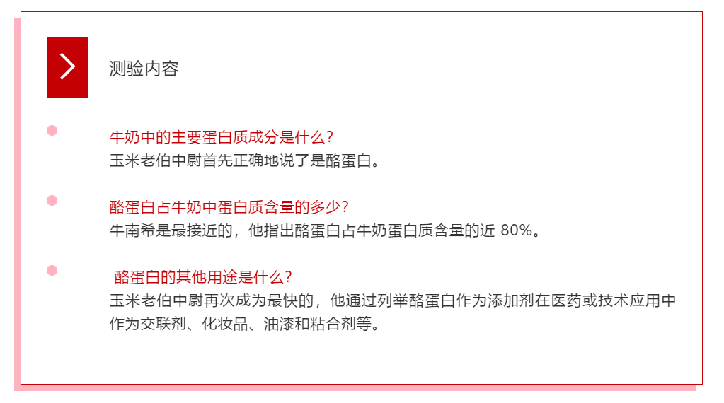 玉米老伯中尉高興地拍了拍手,是時候看看結果了!那就先考查牛奶中酪蛋白的測定結果。