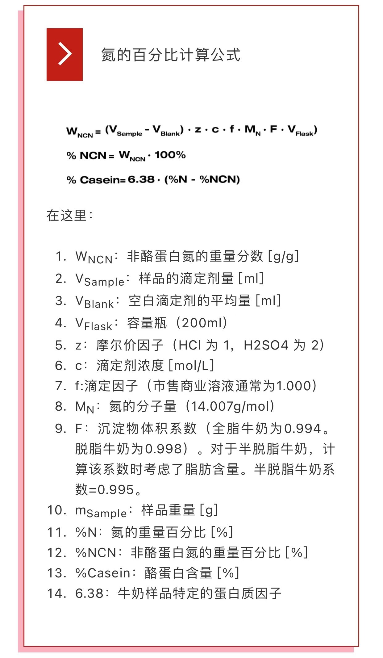 最后,他們準備計算牛奶中蛋白質的測定結果,首先用以下公式計算氮的百分比: