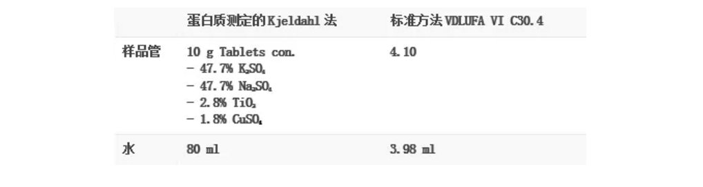 經過一段時間后,他們注意到樣品管不透明且呈綠色。梅蘋果建議在步驟 2 上再消化 30min,這樣就解決了問題。他們讓樣品冷卻到環(huán)境溫度,然后進行蒸餾和滴定,以測定牛奶中蛋白質含量。