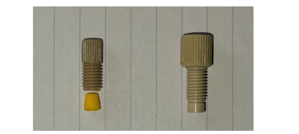 接頭的設計可以是一體式的,即螺母和卡套結合在一起;也可以是兩段式的,有單獨的螺母和卡套,這兩種設計都可用于中壓制備色譜(Flash)的應用。一體式設計更容易使用,只需要用手擰緊。兩段式設計提供了更多的選擇和靈活性。當用鋼材料制成時,它可以用扳手擰緊,而當用PEEK、FEP、ETFE或PTFE材料制成時,可以用手擰緊。