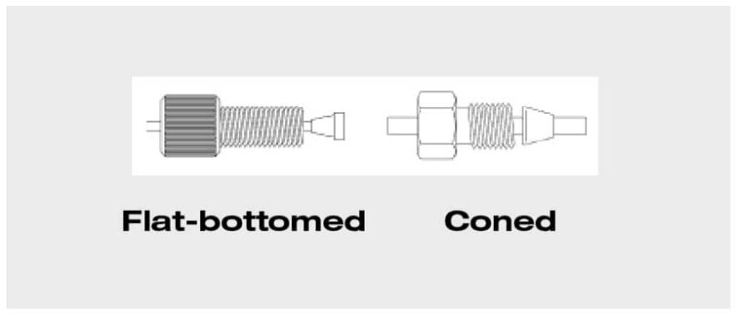色譜接頭的卡套可以是平底的,也可以是錐形的,如下圖所示: