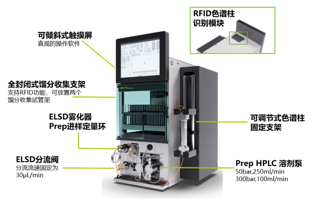 全息中高壓一體制備色譜 Pure C-850 功能十分強(qiáng)大,尤其適用于中藥化學(xué)當(dāng)中復(fù)雜成分的有效拆分。其優(yōu)異的參數(shù)上限為用戶提供更多的選擇性。C-850 所搭載的 DAD+ELSD 雙檢測器系統(tǒng)可以更加完善的檢測有紫外吸收和無紫外吸收的化合物,保證用戶樣品檢測全面性。 Flash 與 Prep 雙模式功能可允許用戶在前期樣品粗分及后期單體化合物高壓制備兩種需求中自由切換。
