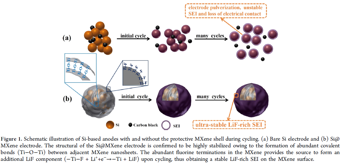 ACS Appl. Mater. Interfaces (2020): MXene Frameworks Promote the Growth and Stability of LiF-Rich Solid?Electrolyte Interphases on Silicon Nanoparticle Bundles