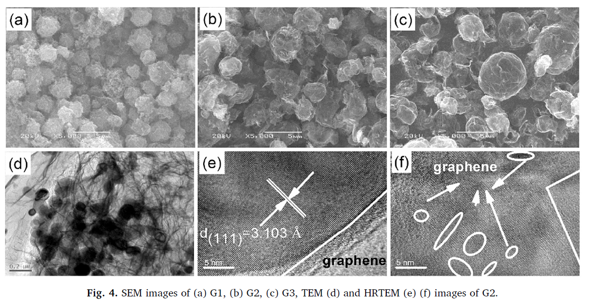 SEM 和 TEM 結(jié)果表明,硅@石墨烯粉末為微米級(jí)別的球形顆粒,石墨烯片包裹了納米硅顆粒。硅@石墨烯復(fù)合材料顯示出優(yōu)良的電化學(xué)性能,當(dāng)硅和氧化石墨烯的質(zhì)量比在 1:4 時(shí),可表現(xiàn)出最佳的電化學(xué)性能,在100 mAh g-1 時(shí)具有 1298.1 mAh g-1 的高初始充電容量。此外,該樣品表現(xiàn)出良好的倍率性能,這表明它是一種很有前途的鋰離子電池負(fù)極材料。