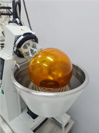 取干燥姜黃塊 250g,放入 4L 95% 乙醇中(圖2),整個(gè)浸泡過程持續(xù) 3 天,溫度為室溫。浸泡完畢后通過紗布和濾紙過濾,然后使用 R-300 旋轉(zhuǎn)蒸發(fā)儀進(jìn)行濃縮,濃縮參數(shù)如表1。
