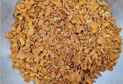 把姜黃原料放入加熱干燥箱內(nèi),設(shè)置 50-60℃,干燥 24 小時(shí),取出碾碎至小塊(圖1)。