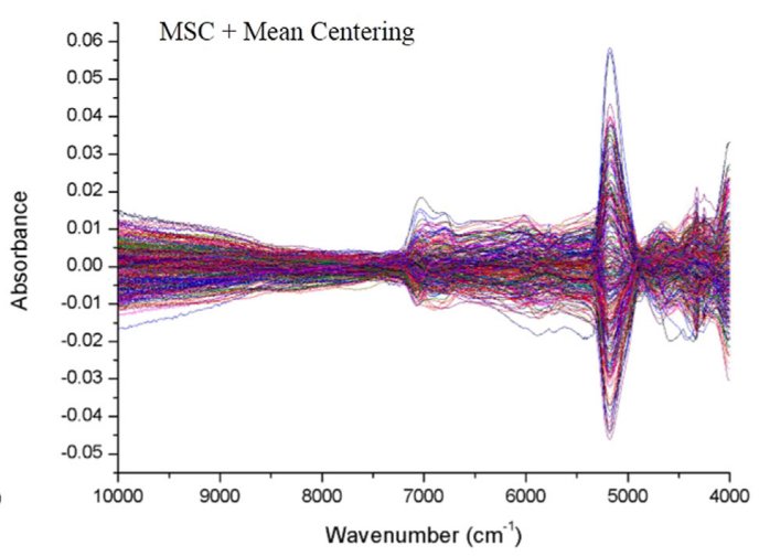 光譜多元信號(hào)校正、中心化處理和 Savitzky-Golay 求導(dǎo)(一階導(dǎo)和二階導(dǎo))。