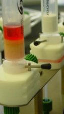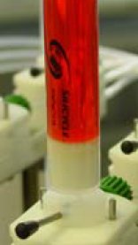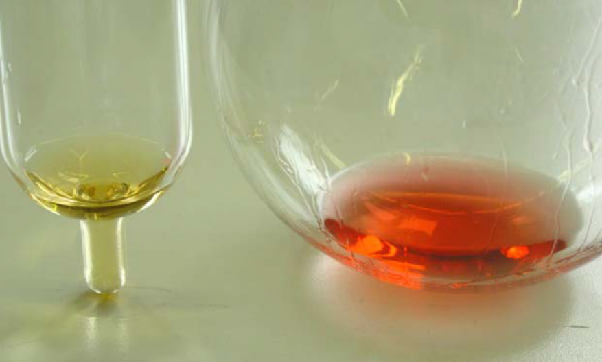 分離結(jié)果如下圖,紅色的偶氮玉紅不能被吸附在柱子上,直接被洗到容器里(右側(cè)),其它被洗脫到接收瓶(左側(cè)),蒸發(fā)完之后,分餾的樣品被濃縮到一定的體積,使用 Syncoreplus 的 SPE 高級模塊的便捷高效的樣品前處理過程至此就已完成。
