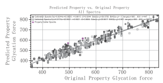 上圖可直觀的看出模型的光譜預測值與原始值的相關性較好。其中,建模集的相關系數為 r 為 0.9613,驗證集的相關系數 r 為 0.9528;建模集標準偏差 SEC 與驗證集標準偏差 SEP 的比值為 29.6099/29.7088=0.9967,模型穩定性較好,具有很好的預測能力。