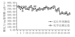 本試驗采用近紅外光譜技術結合偏最小二乘法建立了預測大曲糖化力的定量模型。通過對模型的預測結果與傳統方法檢測結果的對比分析可以看出,該模型的準確度可以滿足實際生產中大曲糖化力的預測。