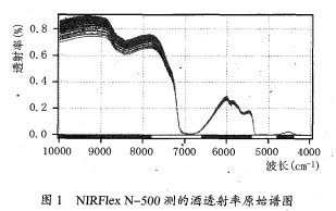 本試驗(yàn)以黃酒為檢測(cè)對(duì)象,用傅立葉變換近紅外光 譜儀以透射方式采集近紅外光譜,用國標(biāo)分析方法測(cè)定 其酒精度。建立定量分析模型,探討利用傅立葉變換近紅外透射光譜法快速測(cè)定黃酒酒精度。