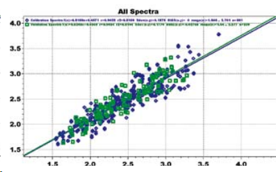 上述結(jié)果表明近紅外在分析以上兩種降壓藥中的有效成分時(shí),能夠做到和標(biāo)準(zhǔn)色譜方法接近的結(jié)果,同時(shí)省去了繁瑣預(yù)處理步驟以降低成本,改善藥品質(zhì)量控制能力來提升生產(chǎn)效率,具有巨大的經(jīng)濟(jì)潛力。