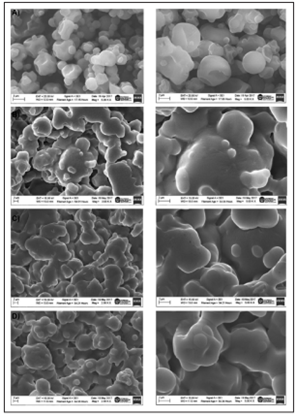 粒徑和形態(tài)結(jié)果如圖5顯示。(a)在最佳工藝參數(shù)上制備的粉體,其微膠囊緊湊,類球形形狀,具有不同的大小和不規(guī)則的表面與壓痕,外表面顯示無裂縫或破壞的墻壁,這是確保更高的保護(hù)和更低的氣體滲透性的基礎(chǔ)。