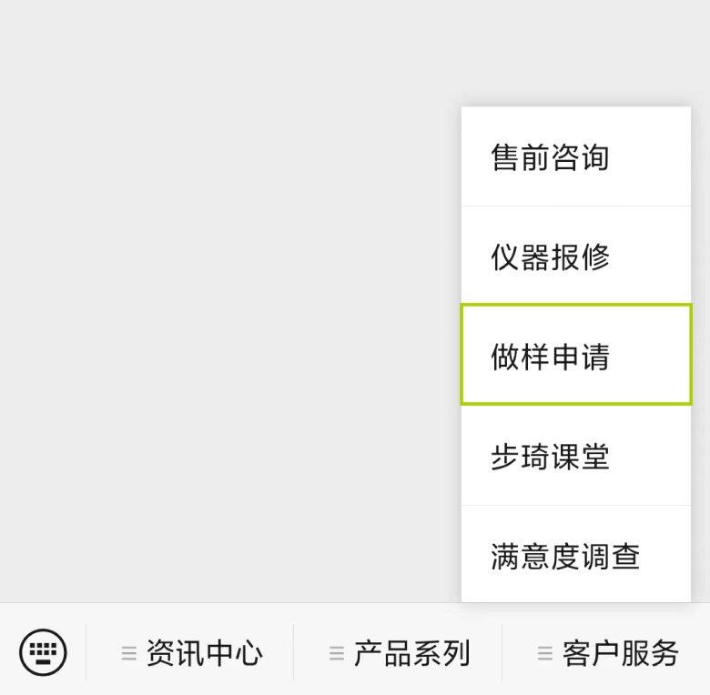 關(guān)注公眾號(hào)【步琦智慧實(shí)驗(yàn)室】——【客戶服務(wù)】——【做樣申請(qǐng)】——選擇【Pure Essential 色譜系統(tǒng)試用申請(qǐng)】