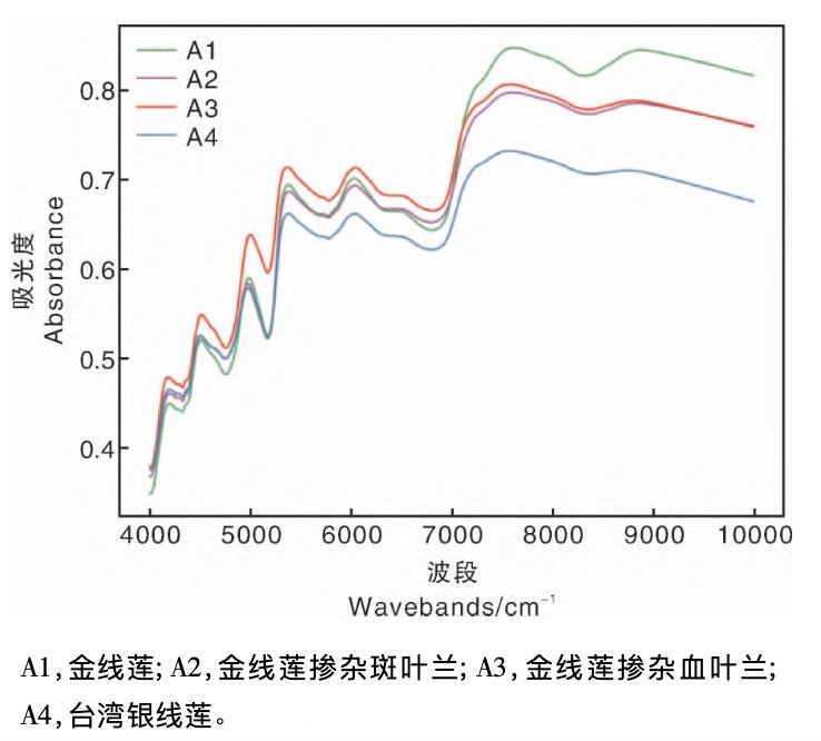 針對金線蓮質量檢測的傳統方法主要有性狀鑒定、顯微鑒定、DNA 鑒定以及高效液相色譜等。這些檢測手段盡管有較高分析精度,但通常也有耗時久、效率低、破壞樣品且需要專業人員操作等弊端。而近紅外光譜分析作為一種快速無損檢測方法就非常適合鑒別金線蓮的真偽。