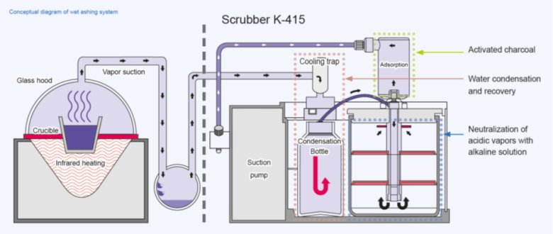 濕法消解儀 B-440 將樣品加熱到高達 600°C 的溫度,尾氣吸收儀提供多步驟進行吸收,以確保完全中和吸收灰化過程中產生的有害煙霧。