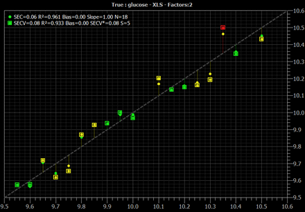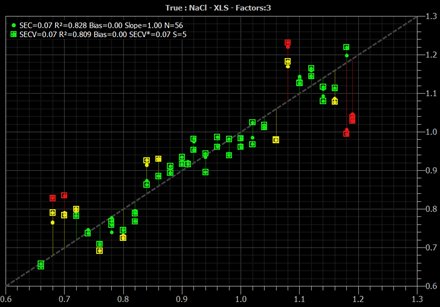 氯化鈉注射液模型 SECV 為 0.07,葡萄糖注射液模型的 SECV 為 0.08,且均有良好線性關系,說明近紅外能夠對這兩類樣品進行快速測定。