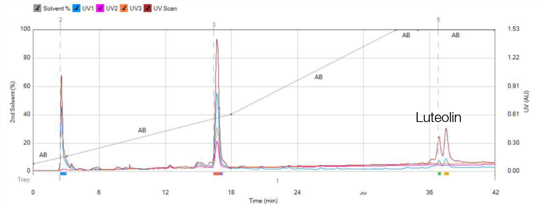 木犀草素色譜峰 | 36min 之后 | 2min 之后 |