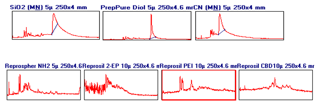 首先我們采用 Sepmatix SFC 8X 平行液相色譜快速篩選適合于木犀草素分離的色譜柱。