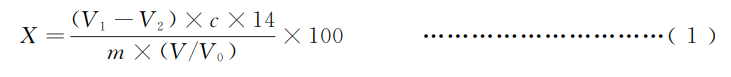 V1 — 試液消耗鹽酸或硫酸標準滴定溶液的體積,單位為毫升(mL)