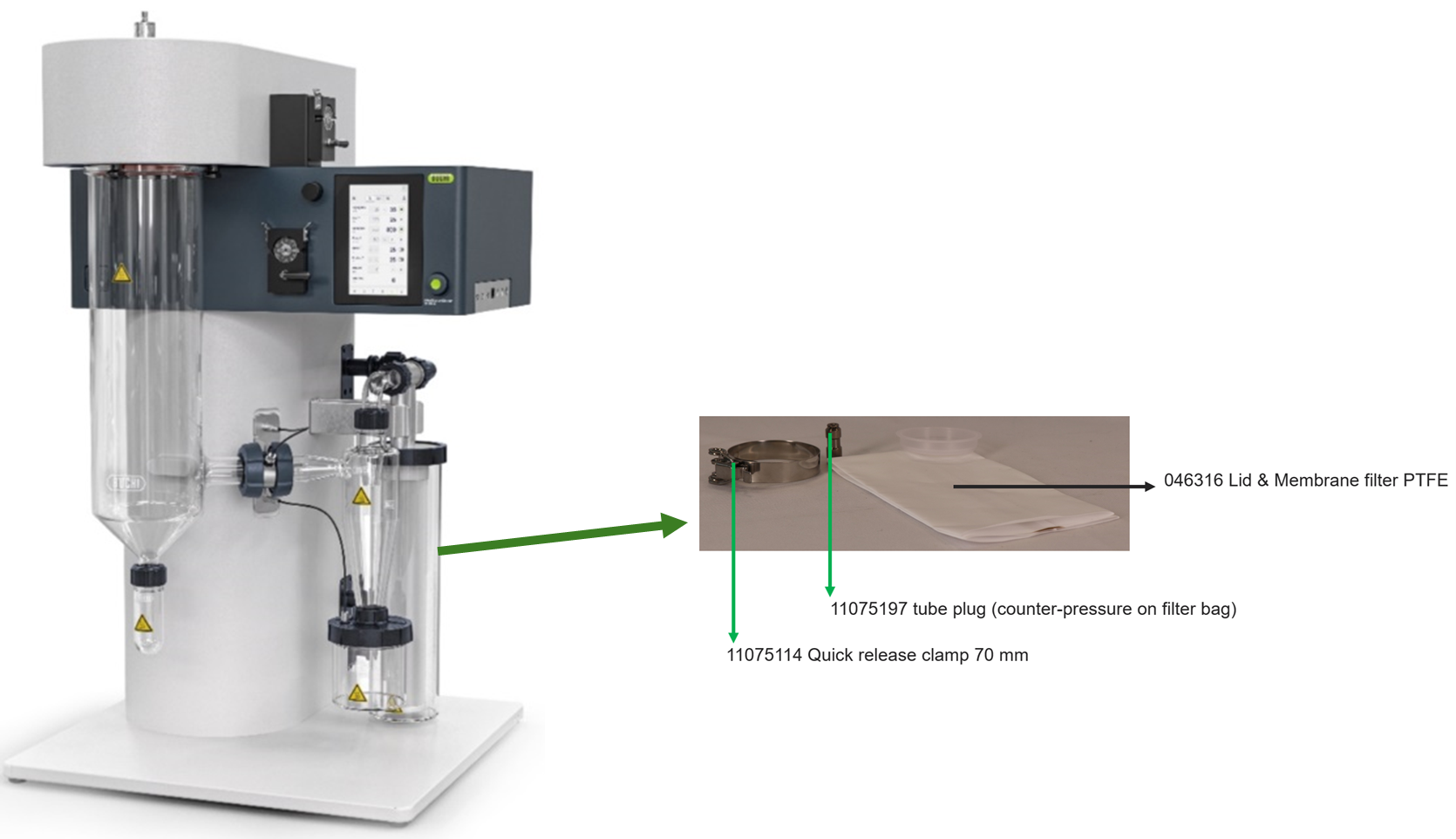▲ 步琦噴霧干燥儀 S-300 配置的 PTFE 出口過濾袋