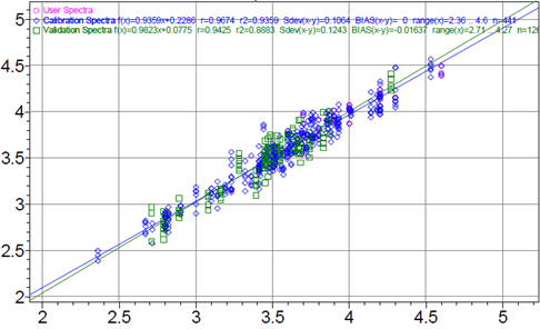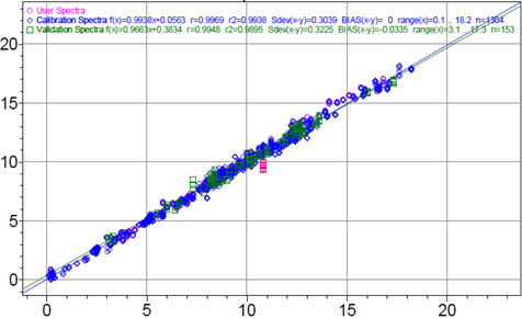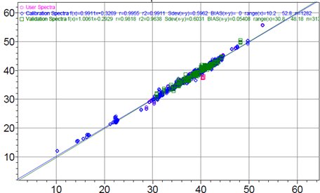 ▲脂肪化學(xué)值與預(yù)測(cè)值的相關(guān)關(guān)系圖