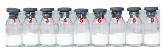 用體積移液管將 3ml 5% 甘露醇水溶液或 NaCl 溶液(50g/L)轉移到西林瓶中(每種溶液各 70 瓶)。然后將樣品放在一個不銹鋼托盤上,并在 -40°C 的低溫下冷凍一夜,也可以使用 -20°C 的冰箱。