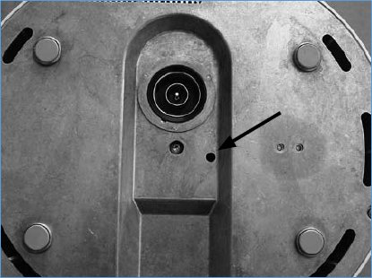 將水浴鍋倒置,底部朝上,B-301/B-305 型號會有一個紅色復位按鈕,直接按下即可,其他型號的水浴鍋,需要借助工具伸進復位孔來按下復位,復位孔孔徑大約4mm。