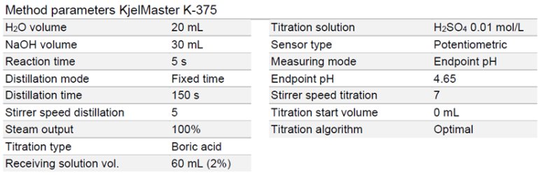使用消解儀 K-449 和全自動凱氏定氮儀 K-375 / K-376 通過電位滴定法測定乳制品中的氮和蛋白質(zhì), 可獲得可靠且重現(xiàn)性好的結(jié)果,相對標(biāo)準(zhǔn)偏差低(RSD)。微量凱氏定氮法減少了消解過程中硫酸和催化劑的用量,也減少了蒸餾步驟中 NaOH 的用量。化學(xué)試劑用量的節(jié)省為經(jīng)典凱氏定氮法帶來了經(jīng)濟(jì)和生態(tài)方面的雙重優(yōu)勢,同時(shí)又保持了其高精度和高準(zhǔn)確度。