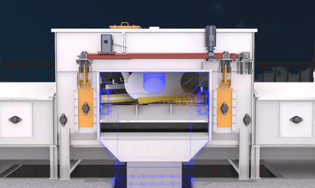 目前國內一些立式筒倉、房式倉采用犁式卸料器卸料入倉,但是此種卸料器比較難控制,卸料器與皮帶有一點空間時,無法把皮帶上的物料卸干凈,后期再輸送其他物料時會發生混料;卸料器壓緊皮帶,存在安全隱患,容易對皮帶造成損傷。