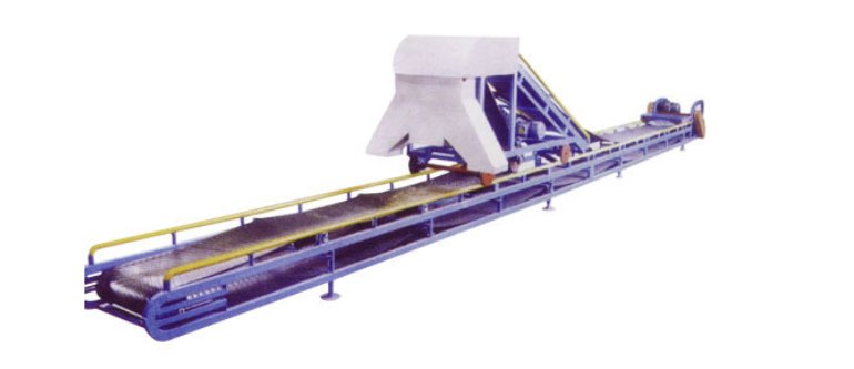 其優點是適應高帶速、大產量的工況,不會損傷膠帶;缺點是為了卸料需要,上部滾筒必須抬到一定的高度,因此卸料小車顯得龐大復雜,車身較長,加上凹弧懸空段,致使加料導料槽至少有10m以上的一段不能卸料,這將使設備布置受到限制。高度長度增加,投資亦增加,同時帶料移動時,會產生撒料現象。