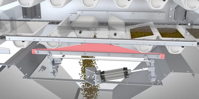 例如,克伯韋為國內某知名堅果加工企業提供剝殼機喂料線輸送系統,一套輸送系統需要為14臺剝殼機喂料,工藝上要求一套輸送系統上需要14個出料口同時均勻出料??瞬f通過位置傳感器控制卸料閥旋轉角度,讓每個出料口實現物料的均勻分配,解決了客戶工藝上一大難題。