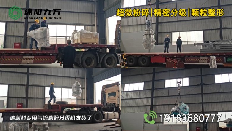 經過綿陽九方長期難題攻關,為客戶定制化打造的設備——碳材料專用氣流粉碎分級機已成功發貨。該設備以卓越的性能和先進的技術,將為客戶提供更高效、更精準的分級解決方案。