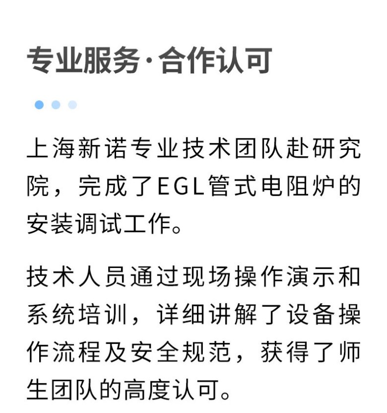 上海新諾專業(yè)技術(shù)團(tuán)隊(duì)赴研究院,完成了EGL管式電阻爐的安裝調(diào)試工作。
