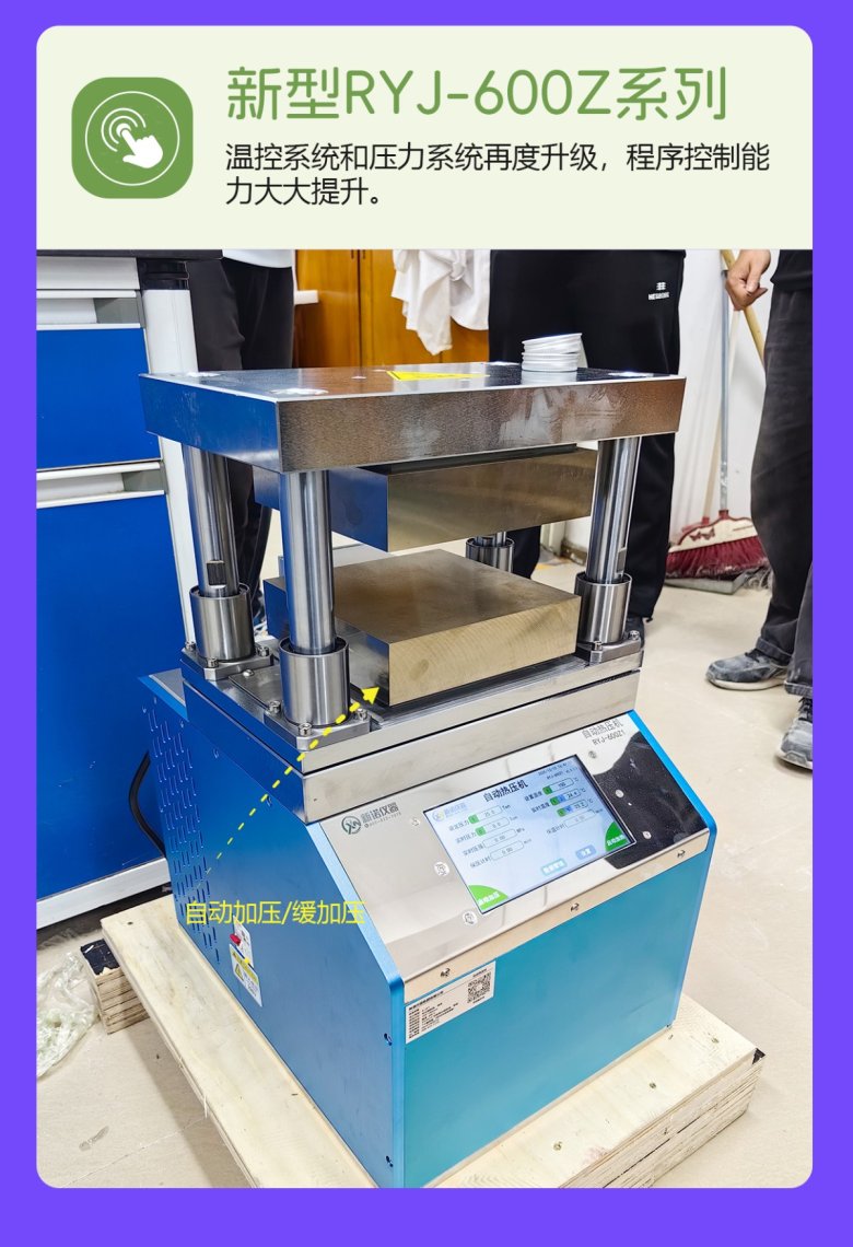 該機采用電動液壓驅動,一體式結構,上加熱板固定,溫控系統和壓力系統再度升級,程序控制能力大大提升,并增設多項安全配置,適合高端實驗室。