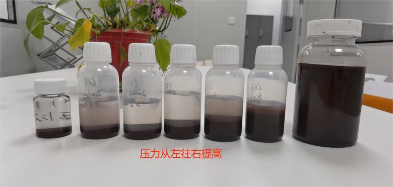 金屬氧化物粉碎前后外觀無明顯變化。靜置一段時間后,壓力越高的樣品分層速度越慢。