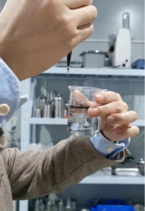 2、取少量加入水中檢測分散效果,發現碳管液細絲狀分散,無顆粒感,實驗結果表現優良。