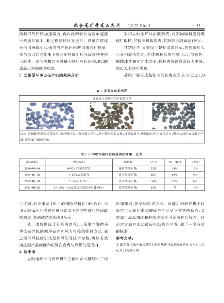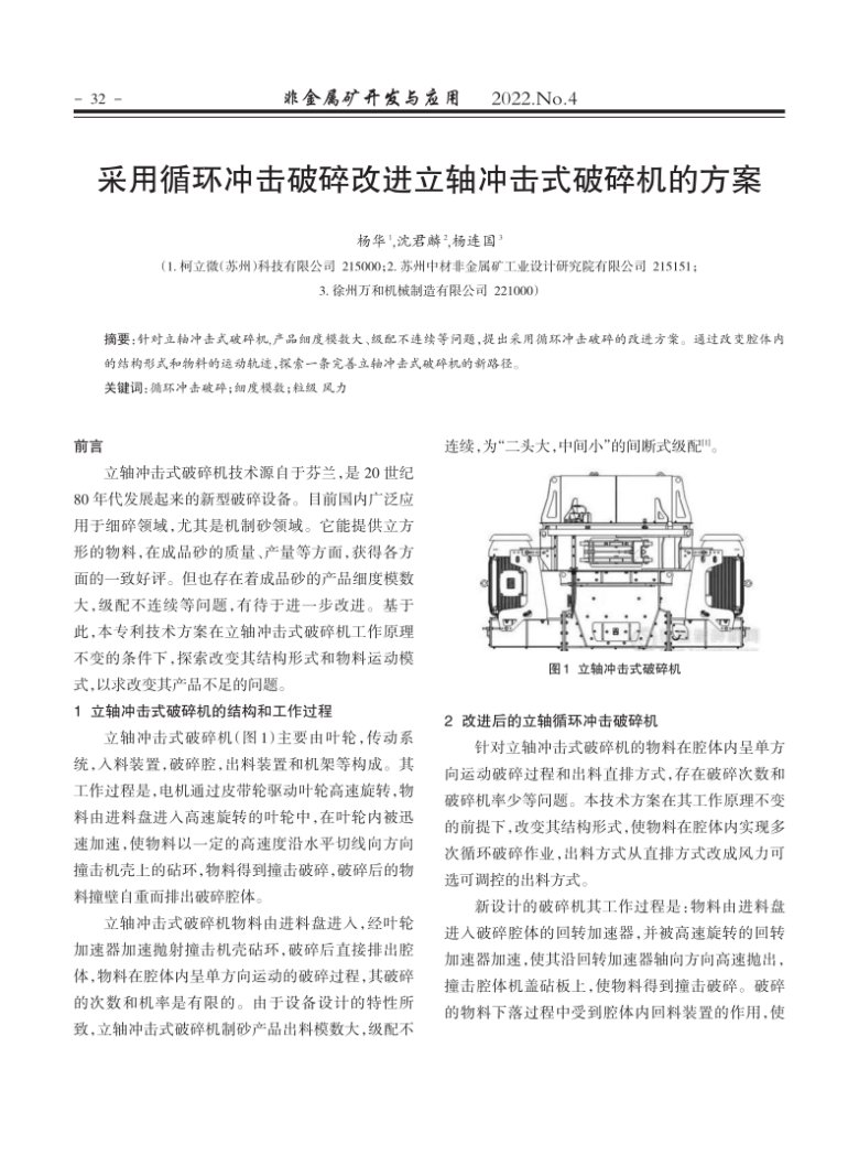 采用循環(huán)沖擊破碎改進(jìn)立軸沖擊破碎機(jī)的方案(發(fā)表于《非金屬礦開(kāi)發(fā)與應(yīng)用》2022年第4期)