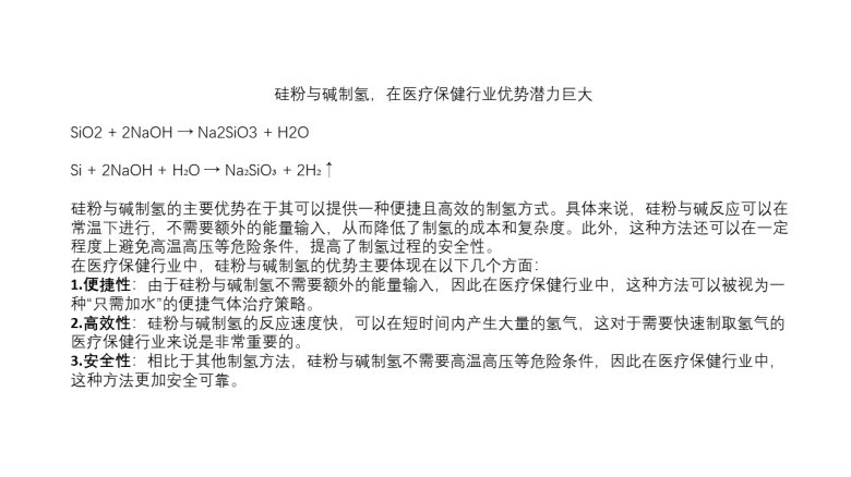 硅晶粉制氫,在醫學保健行業的應用價值可期